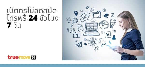 เน็ตทรูไม่ลดสปีด โทรฟรี 24 ชั่วโมง 7 วัน ความเร็วเน็ต 1 Mbps